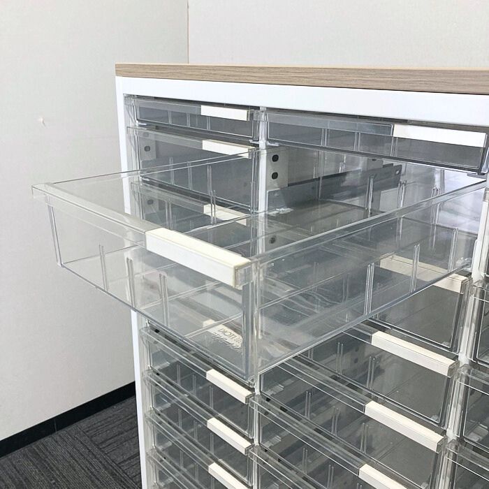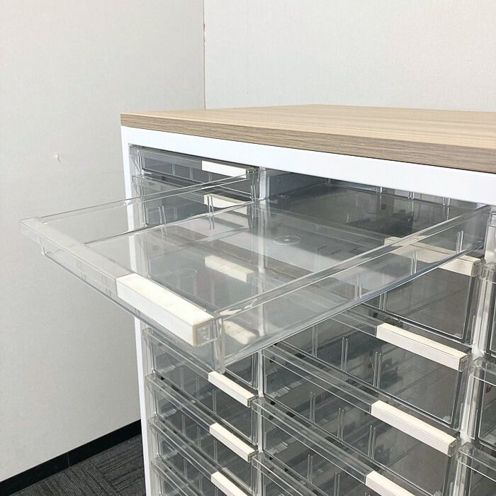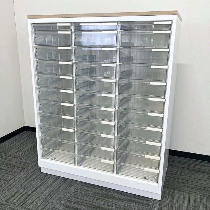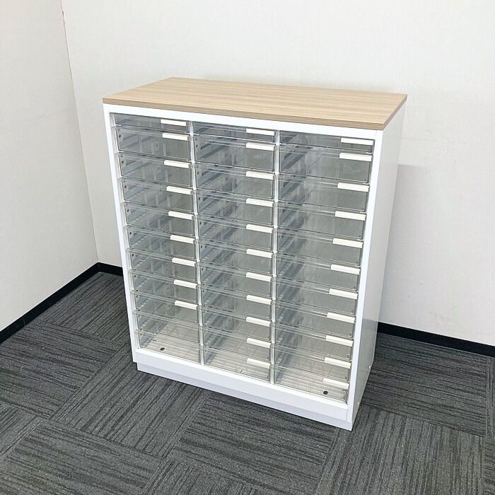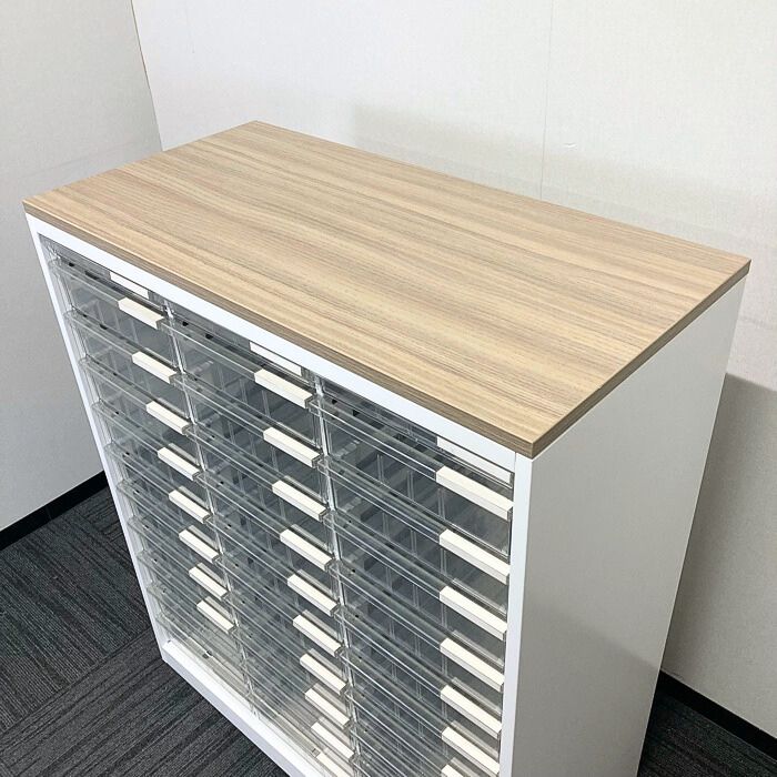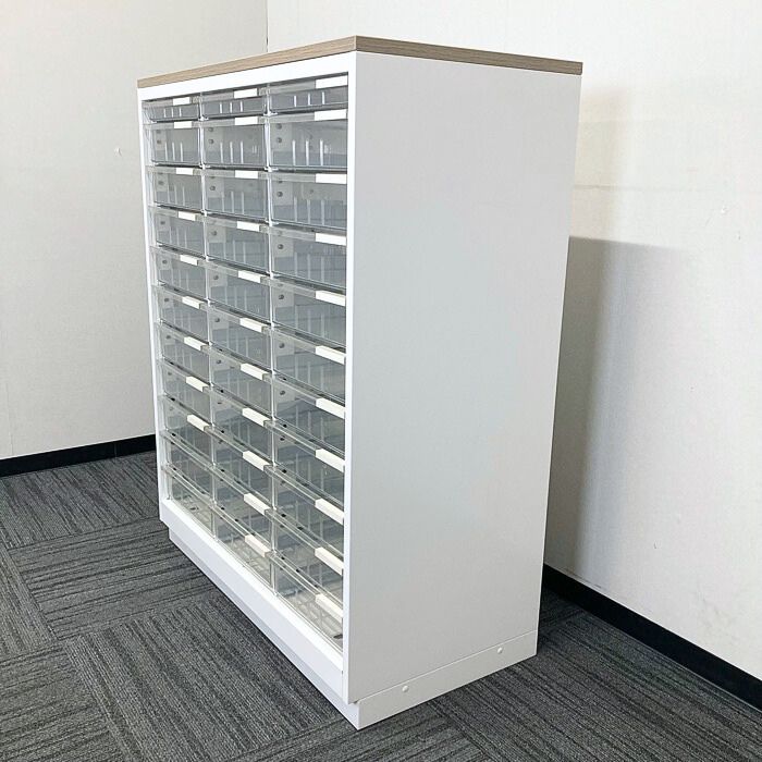 イトーキ シンラインキャビネットシリーズ クリスタルトレイB4対応[浅型トレイ3段/深型トレイ30段] HTM-109KBN-W9 W900×D450×H1118 天板:アッシュドオークM/本体:ホワイト 中古