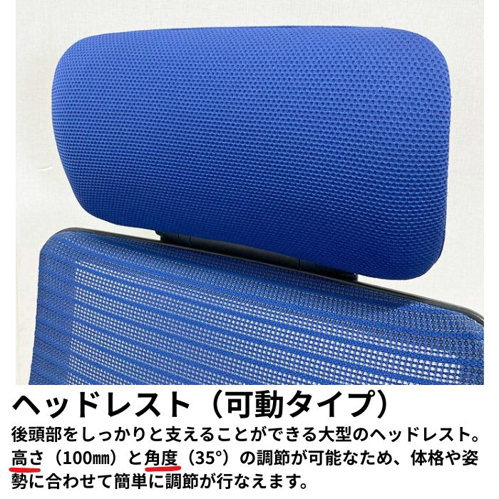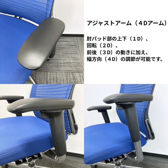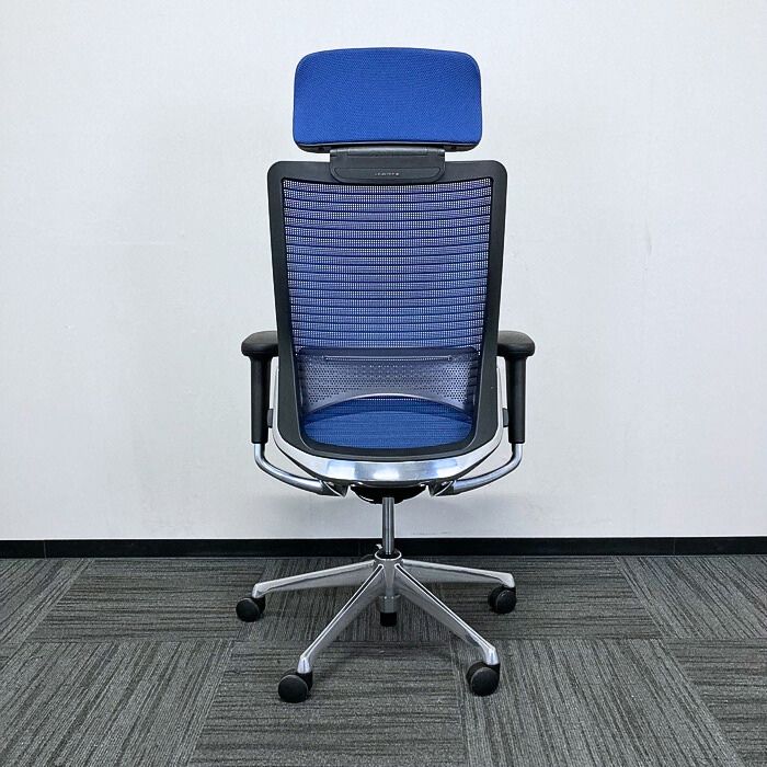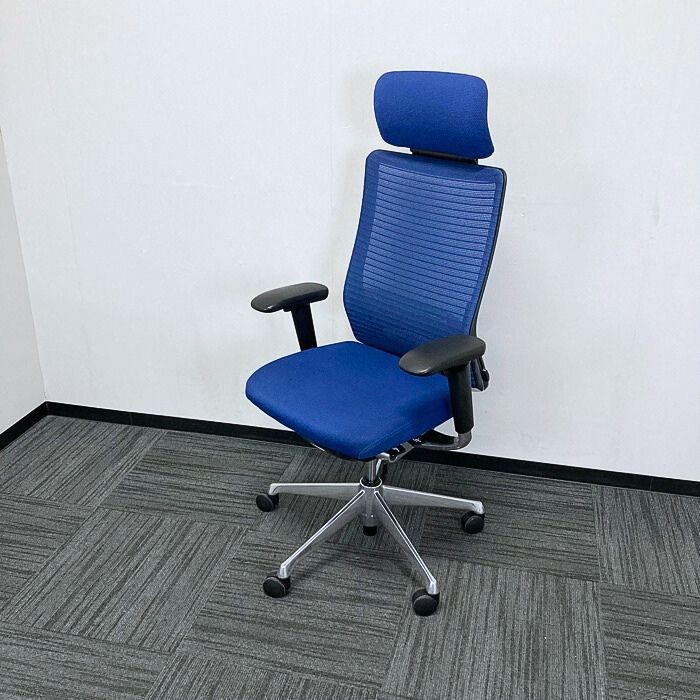 オカムラ コーラルチェアシリーズ オフィスシーティング[アジャストアーム] CQ8ABS FSH3 ヘッドレスト ランバーサポート ミディアムブルー 2019年製 中古