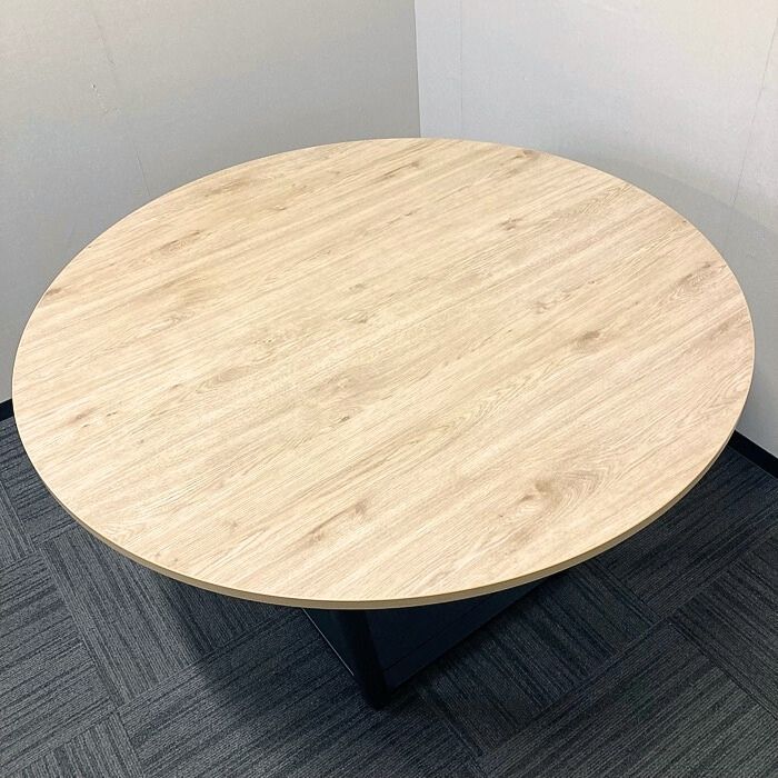 コクヨ リージョンシリーズ 円型テーブル[ボックス脚] LTT-RGC12MX1NN Φ1200×H720 天板:エイジドナチュラル/脚:ブラック 2023年製 中古