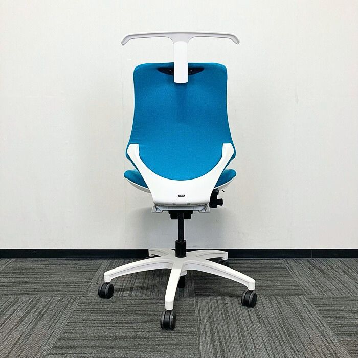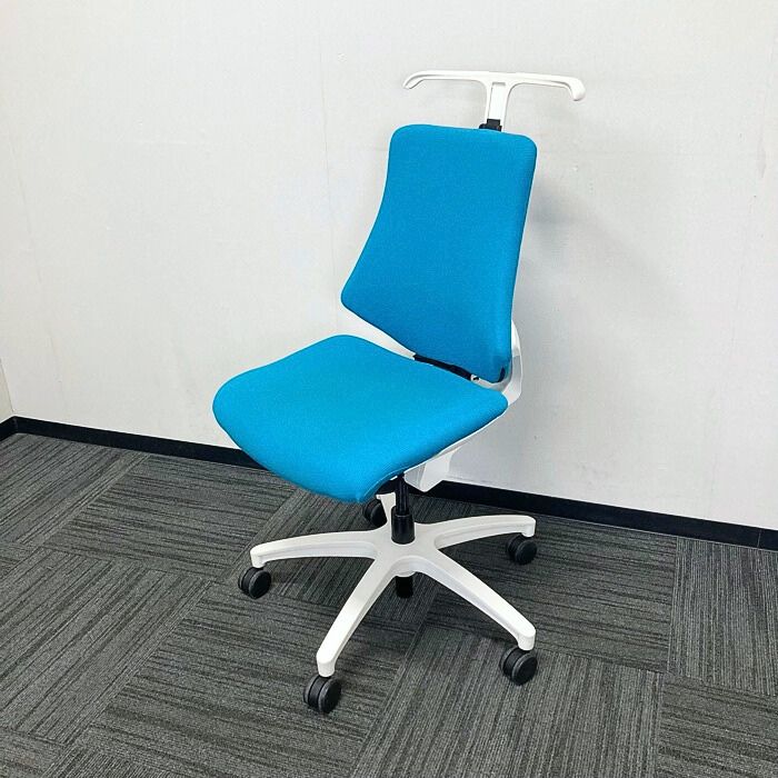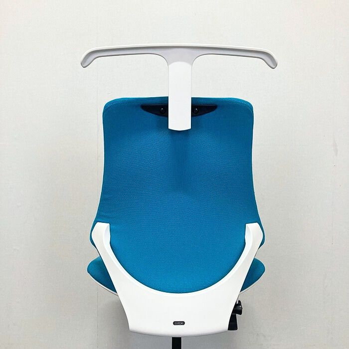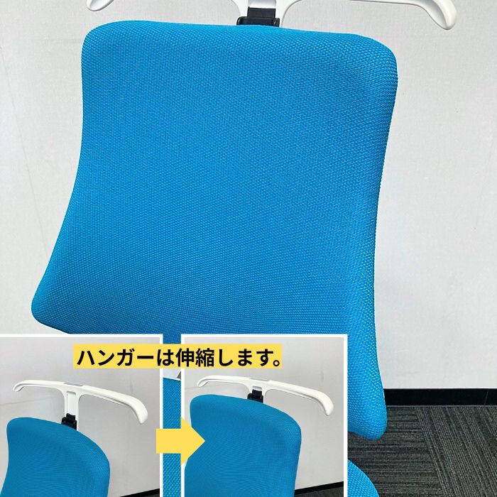 イトーキ エフチェアシリーズ オフィスチェア KG-140GSH-W9A3 クロスバック ハンガー付き 背座:ストロングブルー/フレームホワイト 2018年製 中古