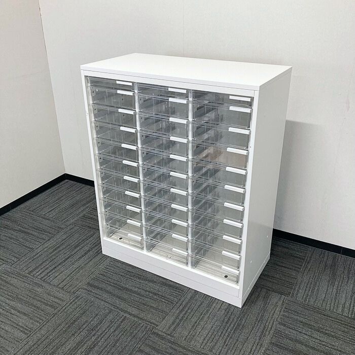 イトーキ シンラインシリーズ クリスタルトレイA4対応[浅型トレイ3段/深型トレイ30段] HTM-109KAH-W9 W900×D450×H1118 ホワイト 2024年製 中古