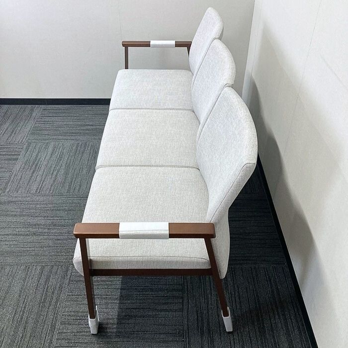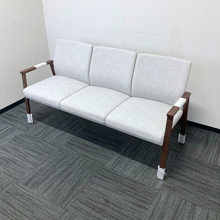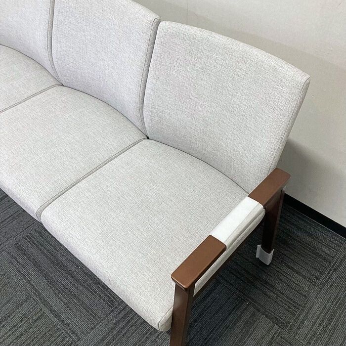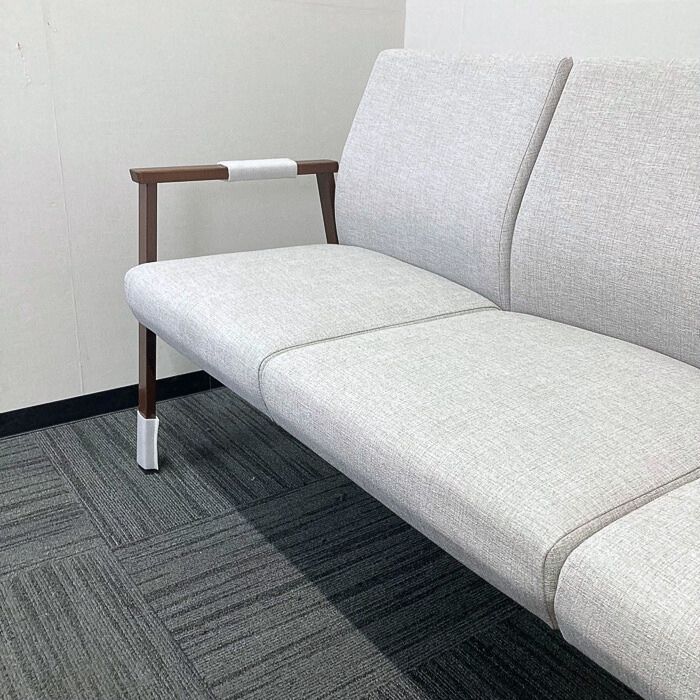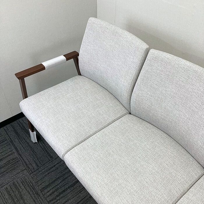 オカムラ L8E7シリーズ ロビーチェア[アセロ] L8E7GB PE52 W1568×D610×H815(SH435) 背座:ライトグレー/肘木:ダークブラウン/脚:ダークアンバー 2025年製 新古品