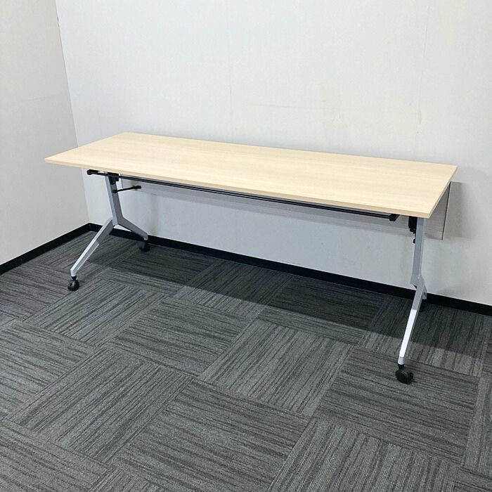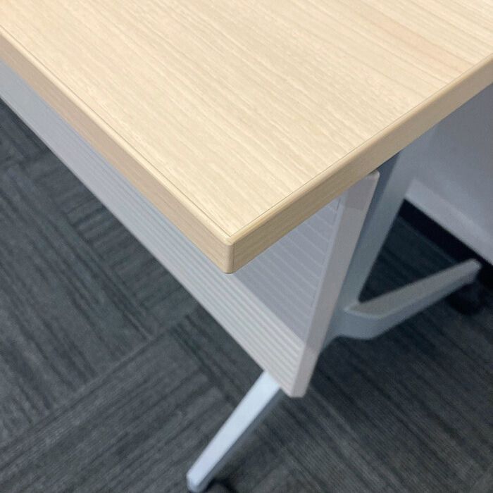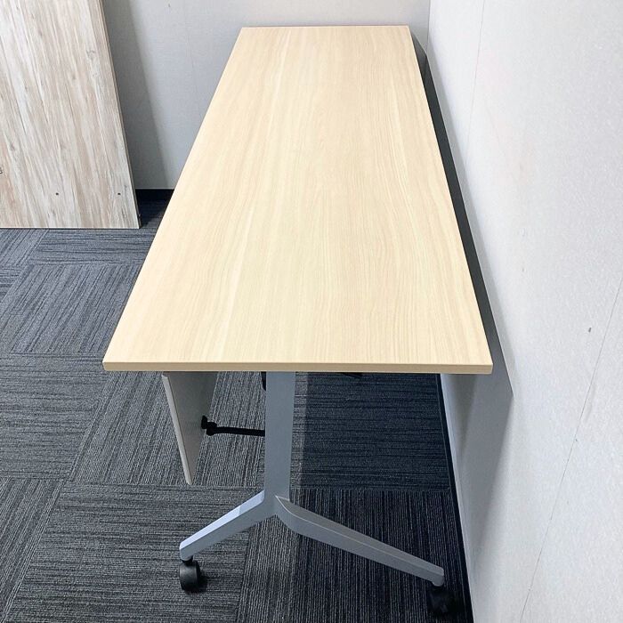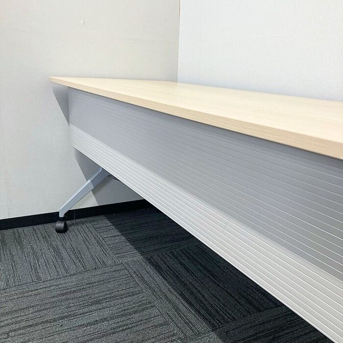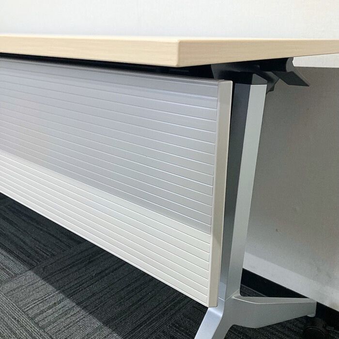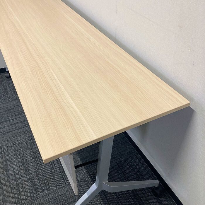 内田洋行 パラグラフシリーズ 平行スタックテーブル[幕板付き/棚板付き] W1800×D600×H720 天板:ナチュラルファインウッド/脚:シルバーメタリック 2020~2021年製 中古