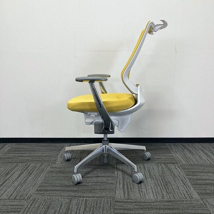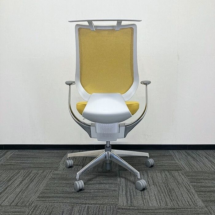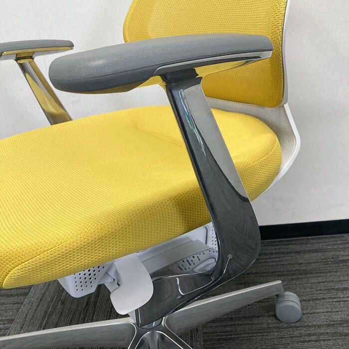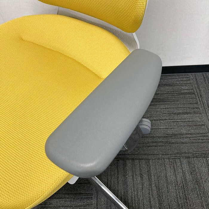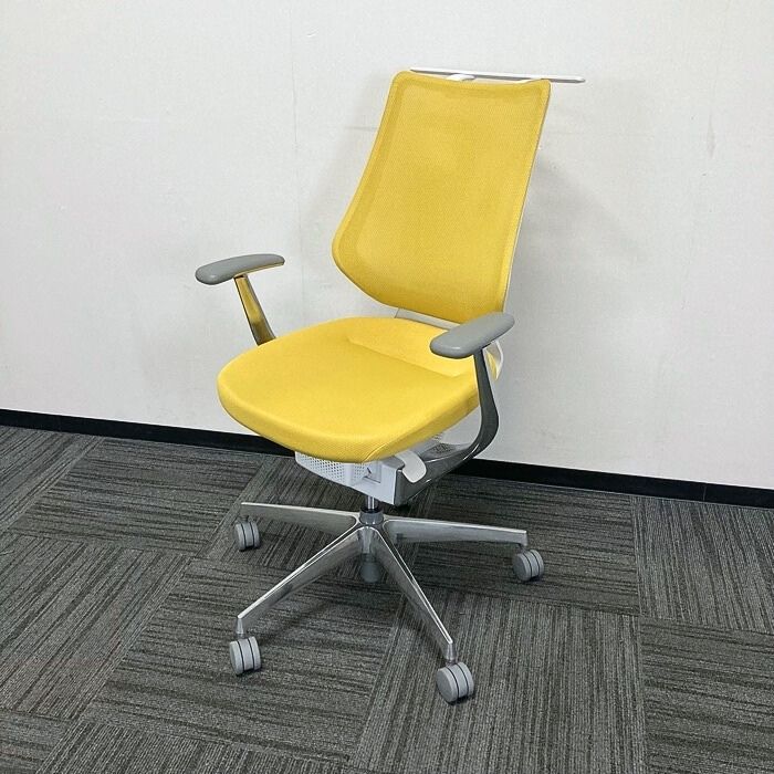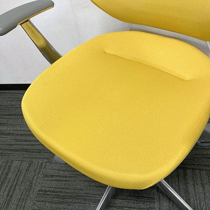 コクヨ イングチェアシリーズ オフィスチェア[アルミ肘] CRS-G3402E1 メッシュタイプ ハンガー付き 背座:オリーブイエロー 2023年製 中古