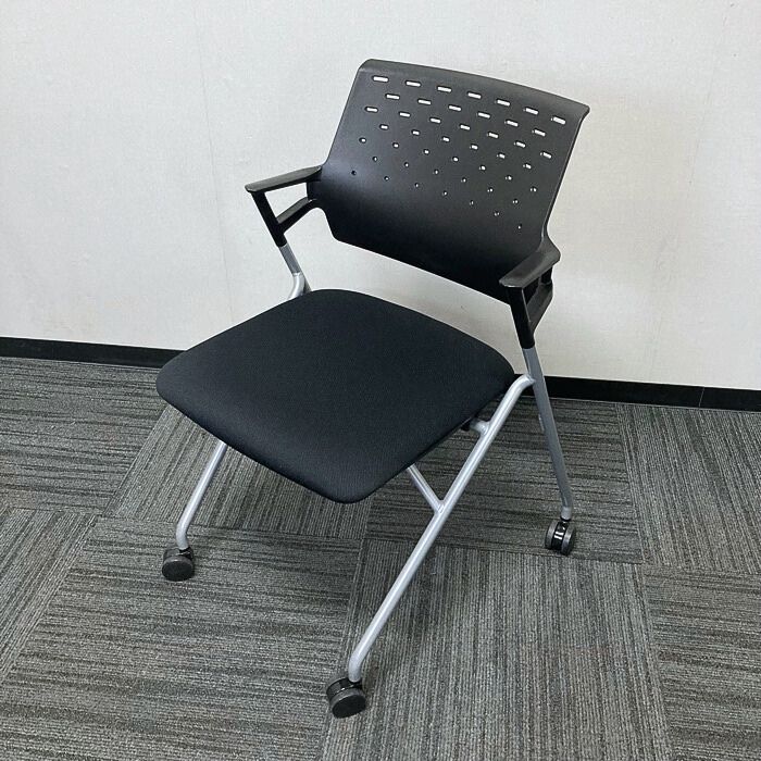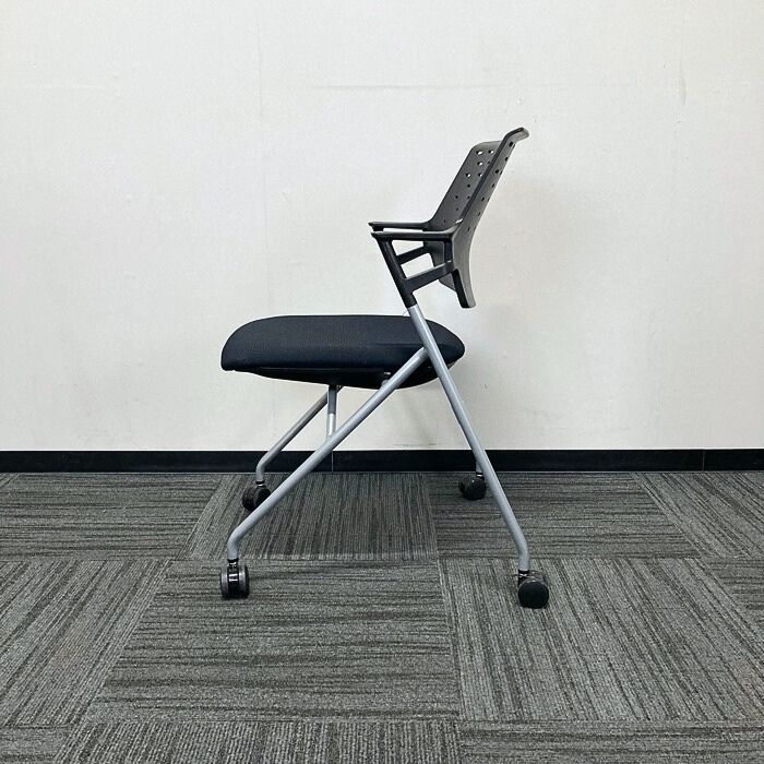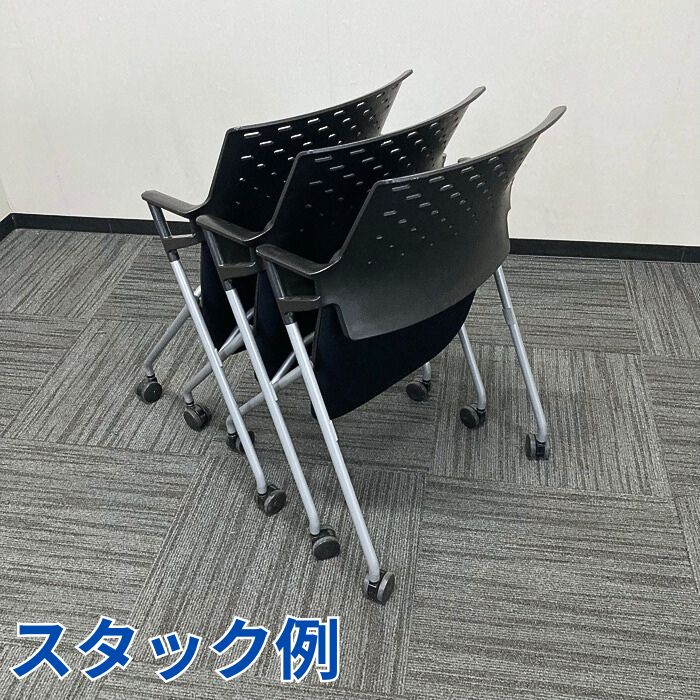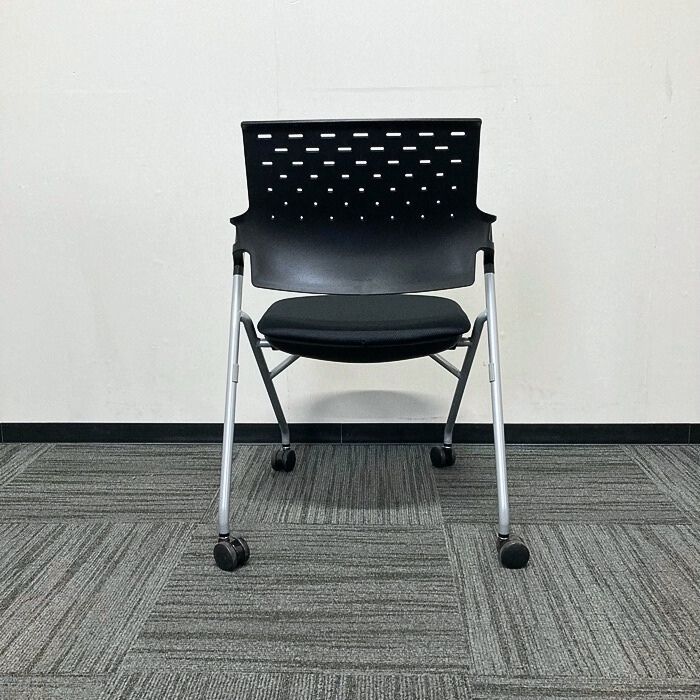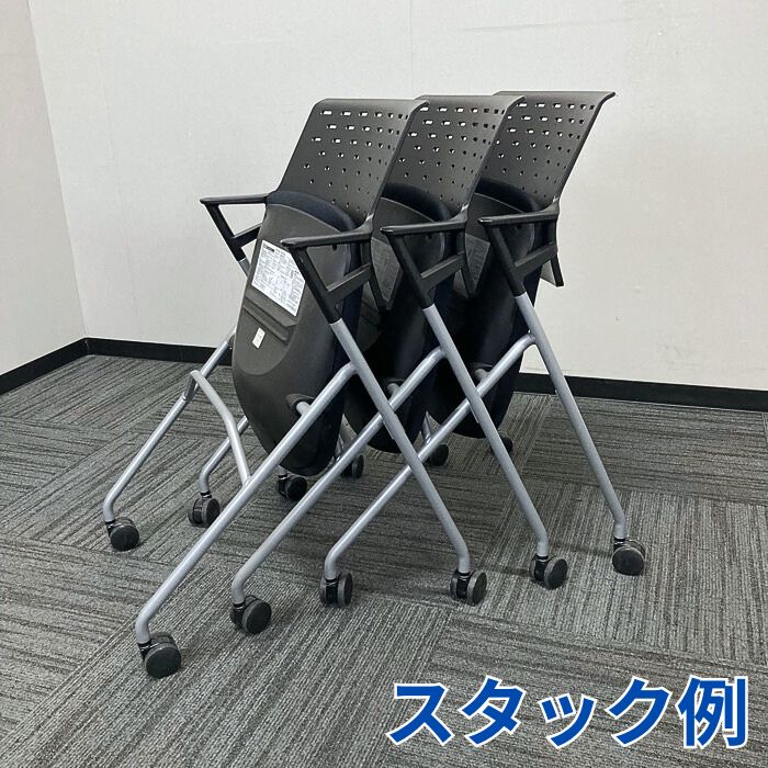 コクヨ ピエガチェアシリーズ 会議用チェア[ネスティングタイプ] CK-720E6GXB6-W 背座:ブラック/脚:シルバー 2021年製 中古