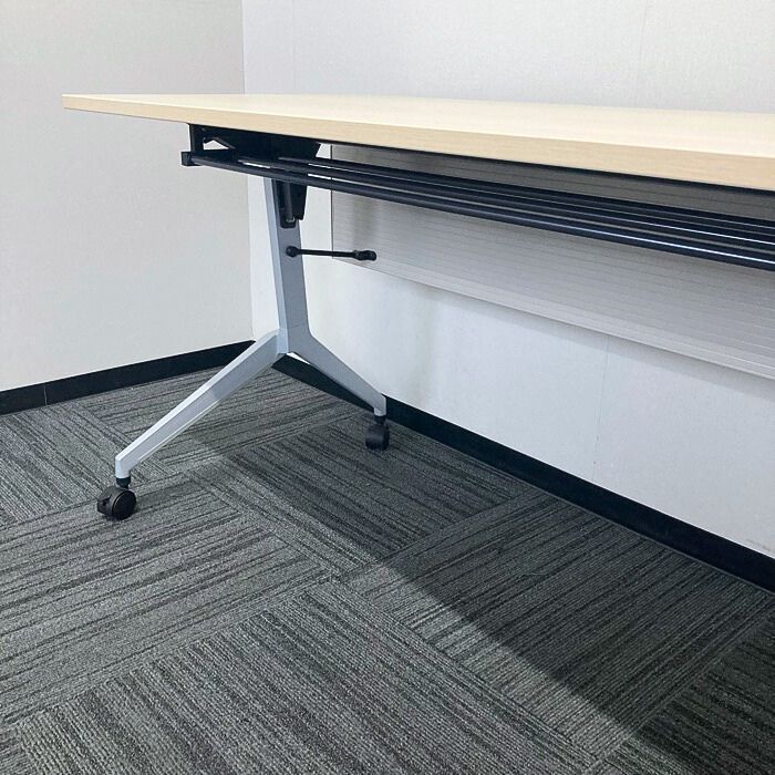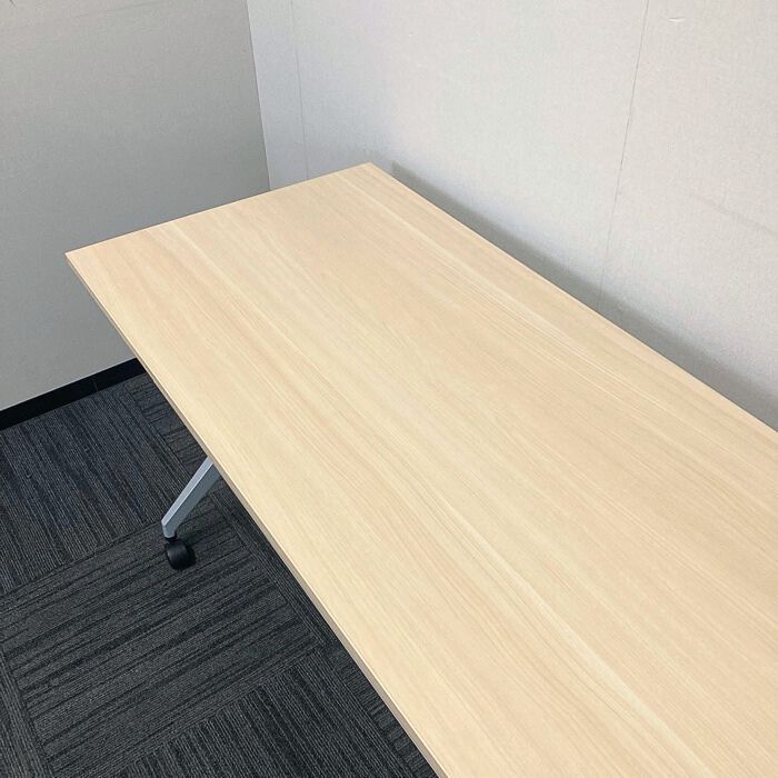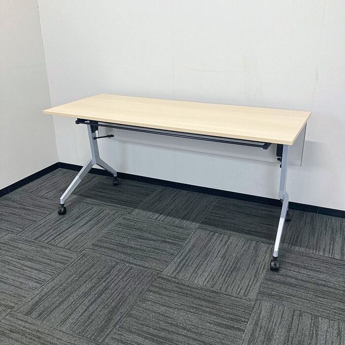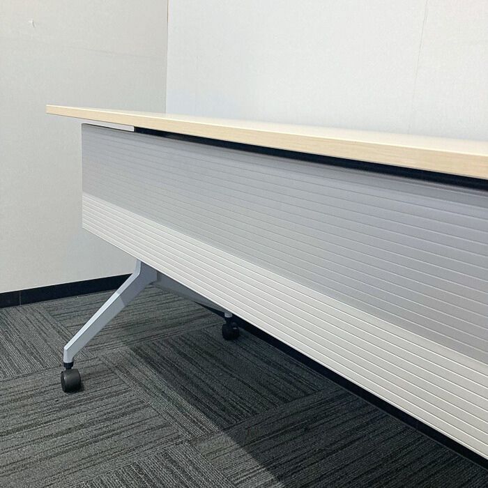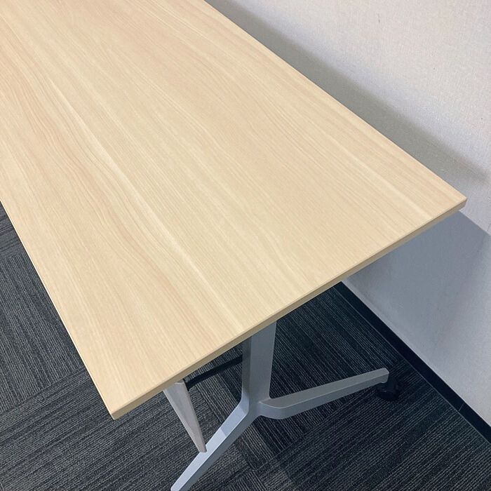 内田洋行 パラグラフシリーズ 平行スタックテーブル[幕板付き/棚板付き] W1500×D600×H720 天板:ナチュラルファインウッド/脚:シルバーメタリック 2020年製 中古