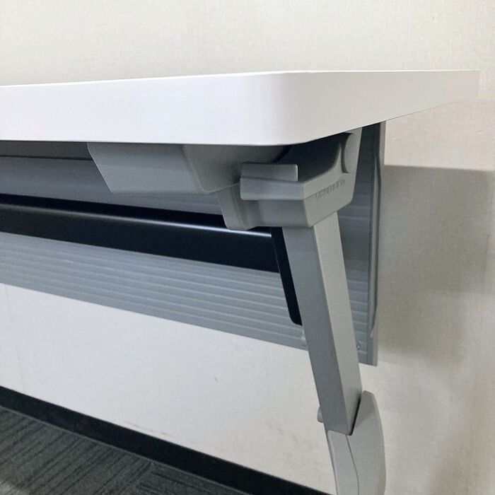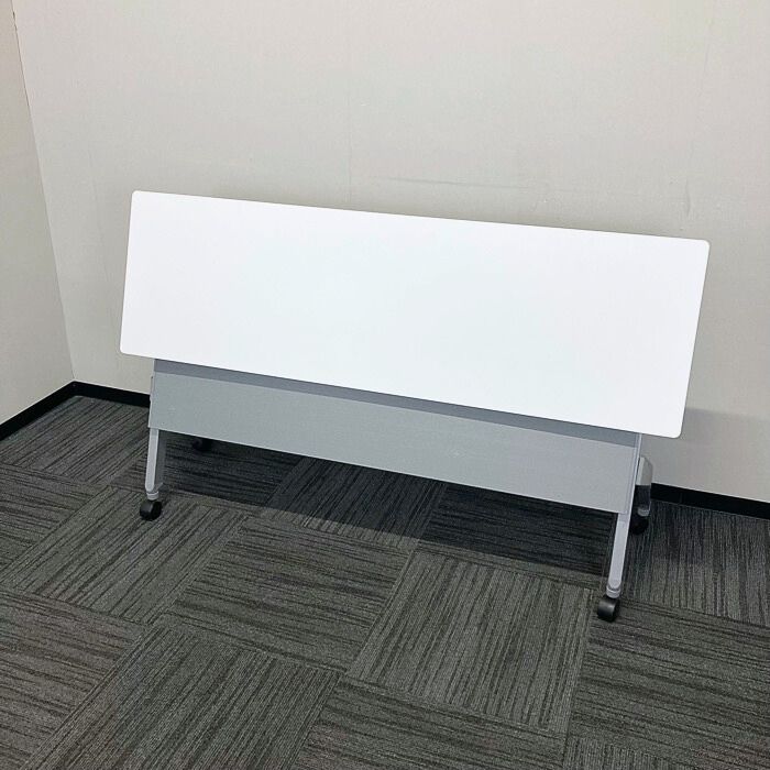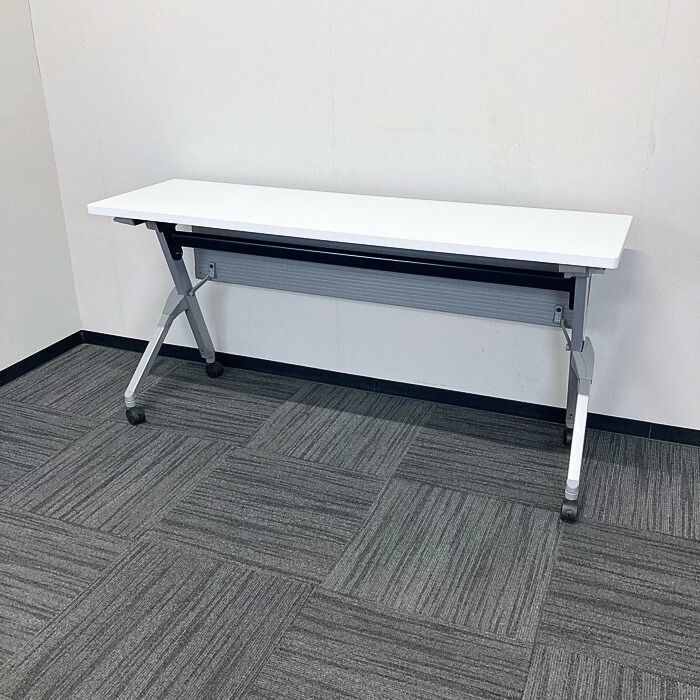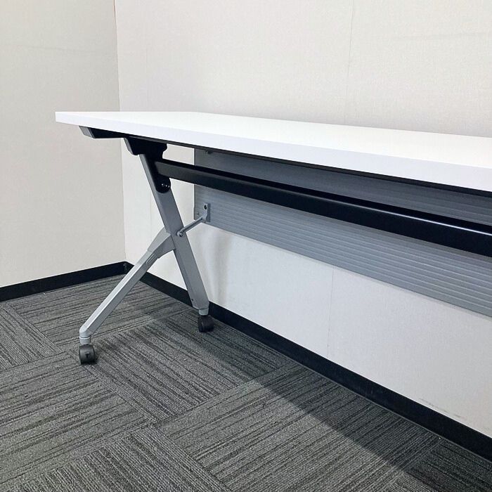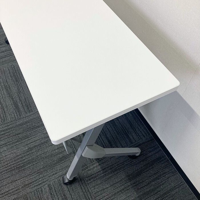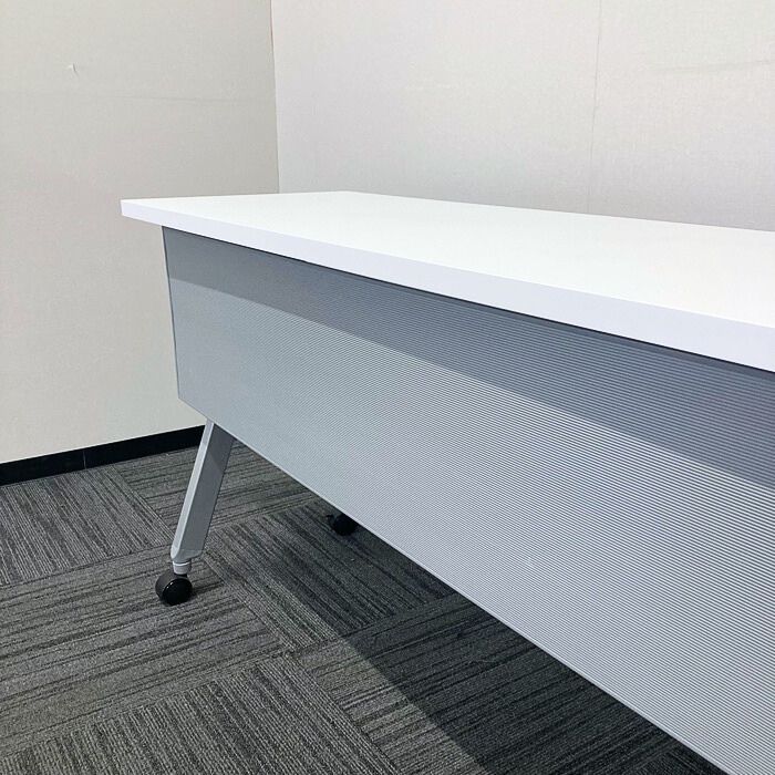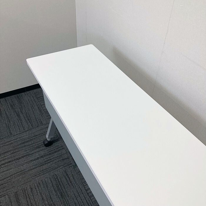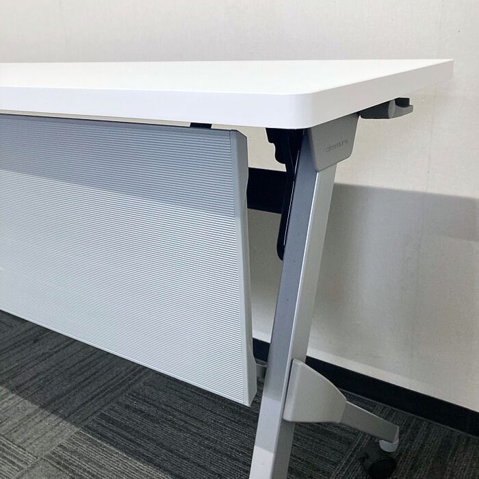 オカムラ フラプターシリーズ 平行スタックテーブル 81F1AC MG99 W1500×D450×H720 天板:ホワイト/脚:シルバー 中古