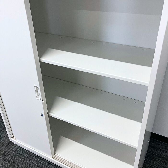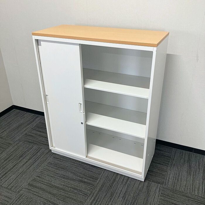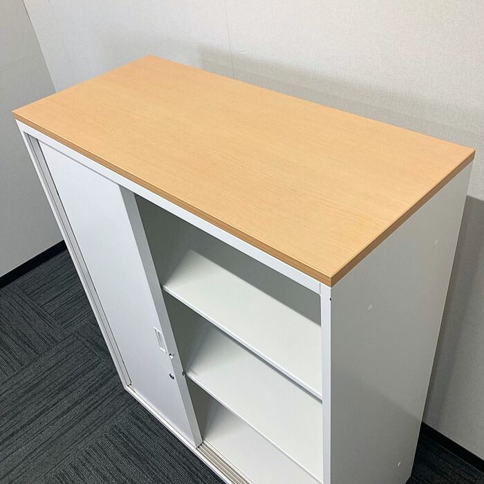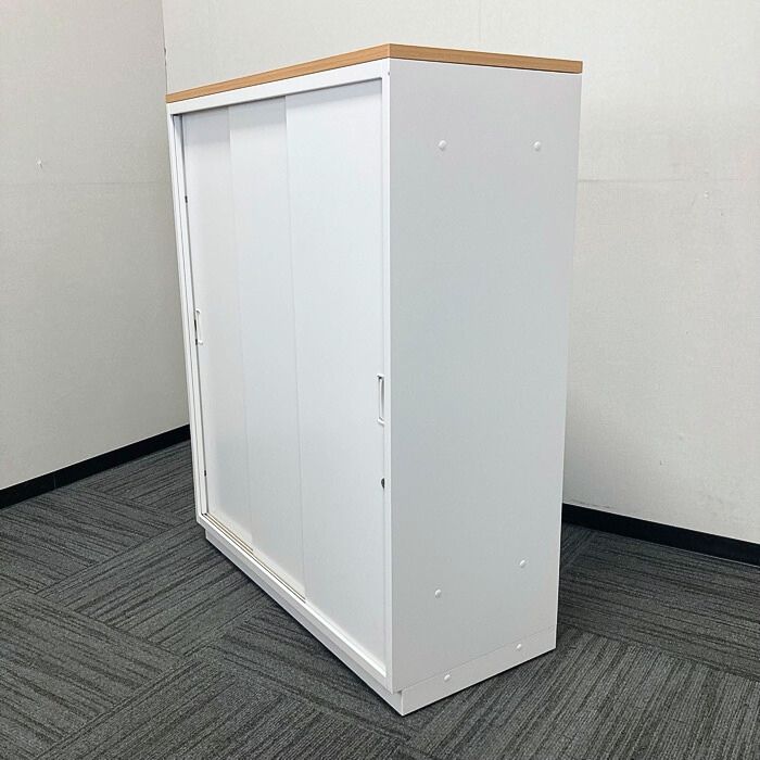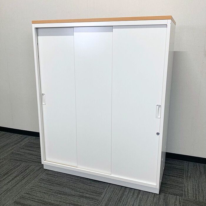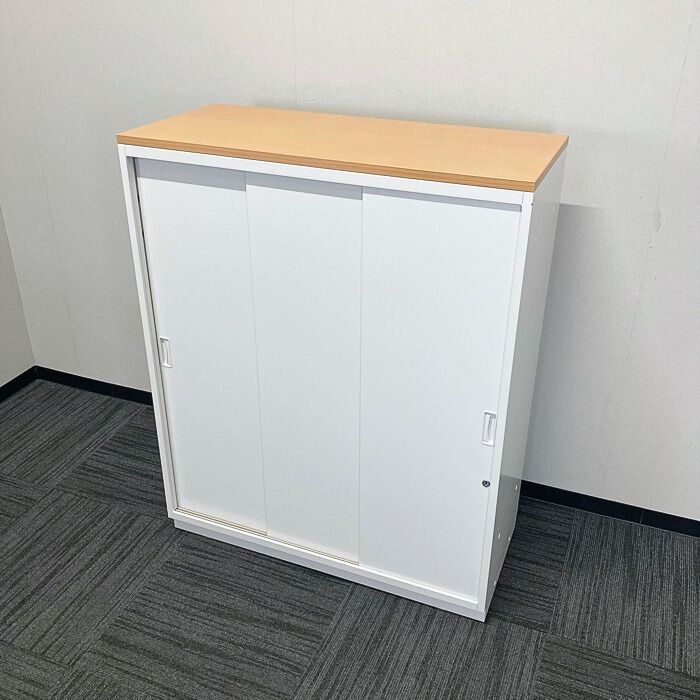 イトーキ シンラインキャビネット400シリーズ 3枚引戸型  HTS-109RSN-W9 W900×D400×H1118 天板:フレッシュメープル/本体:ホワイト 中古