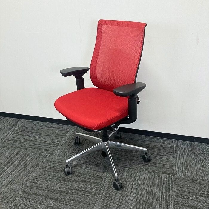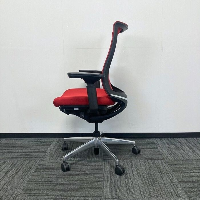 コクヨ ベゼルチェアシリーズ オフィスチェア[可動肘] モデレートタイプ 背座:カーマイン/本体:ブラック 2024年製 中古