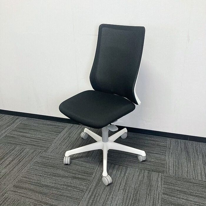 オカムラ フルーエントチェアシリーズ オフィスシーティング CB35WW FKA1 ハイバック 背座:ブラック/フレーム:ホワイト 2022年製 中古 ⑤