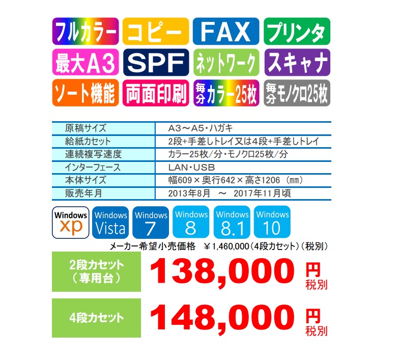 SHARP製のカラー複合機になります。