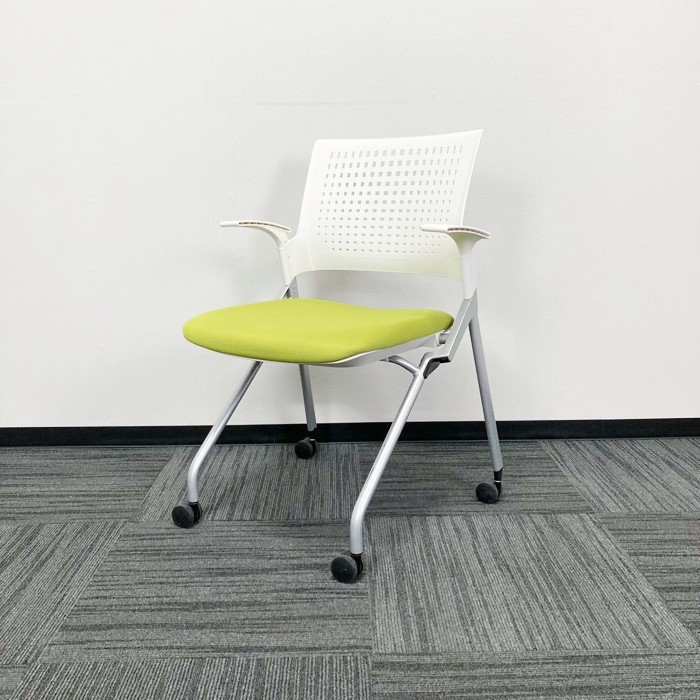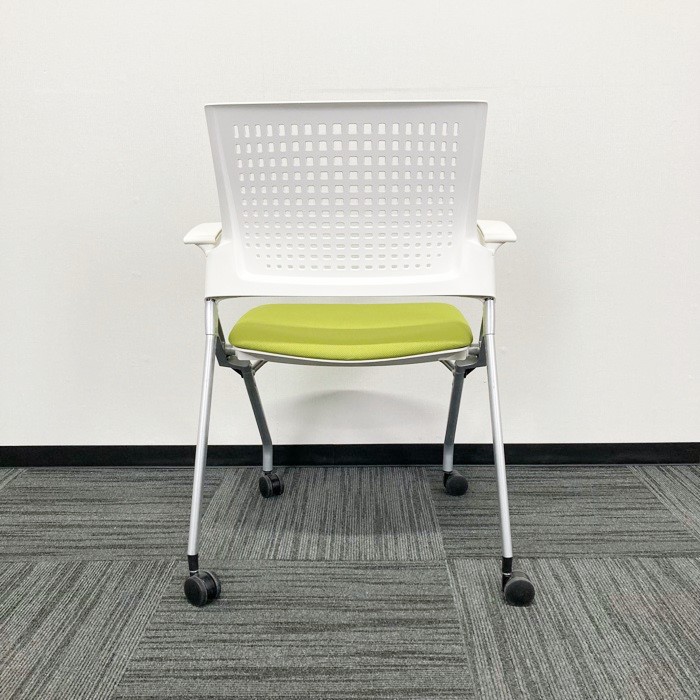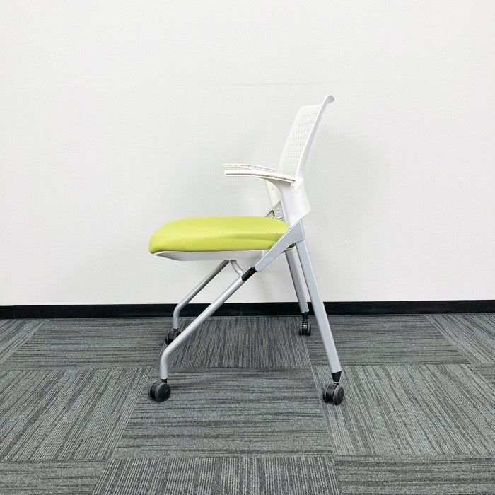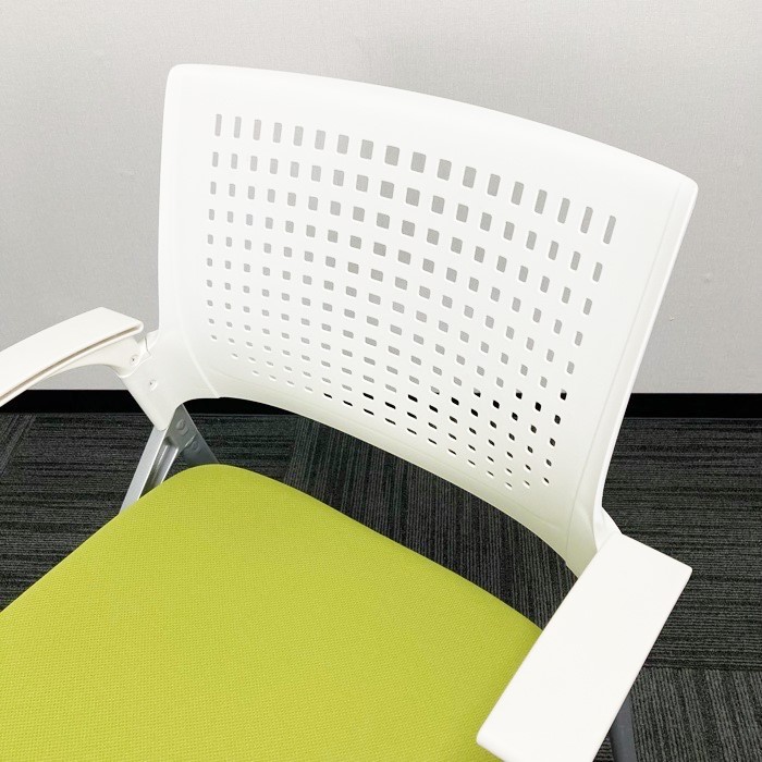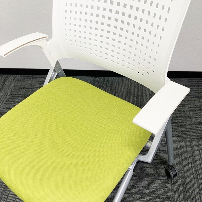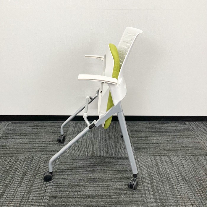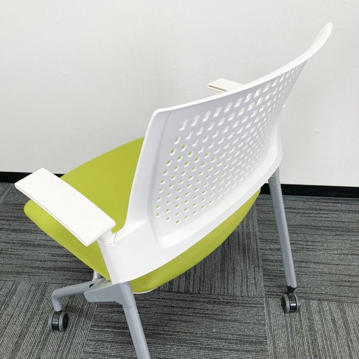 イトーキ モノンシリーズ ネスティンチェア KLD216PG ホワイト/モスグリーン 肘付 2020年製 中古 ※SALE品