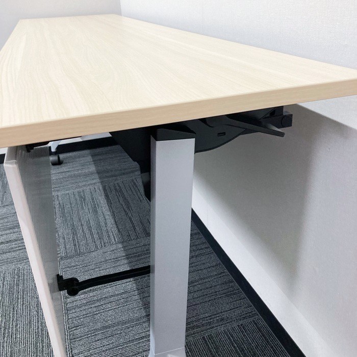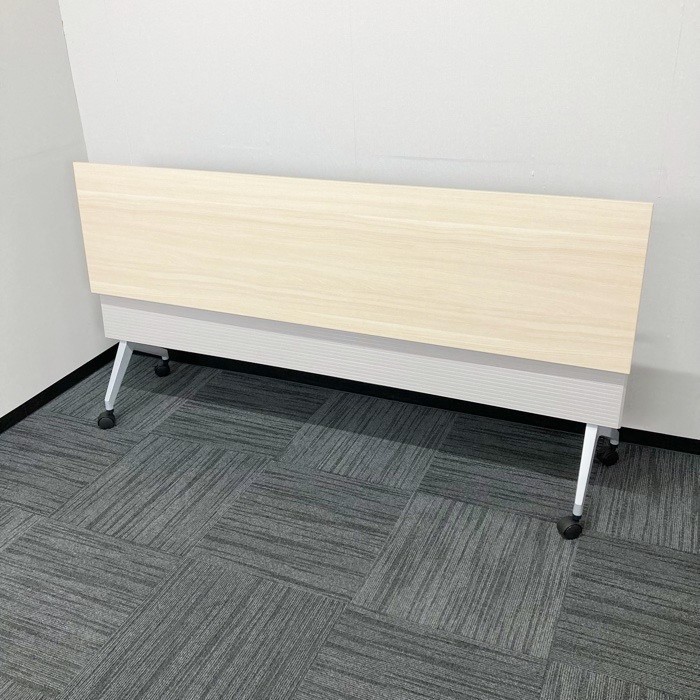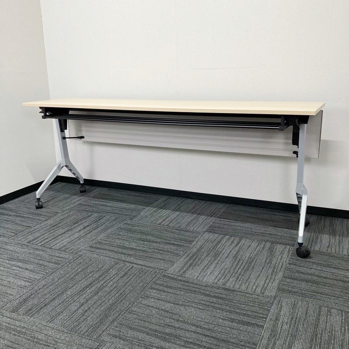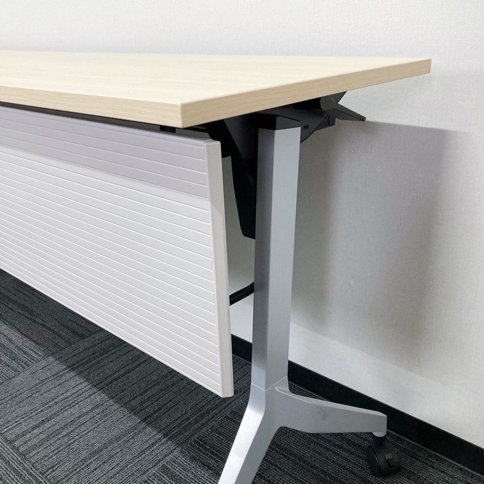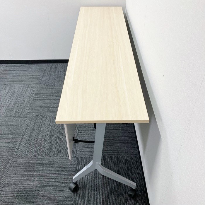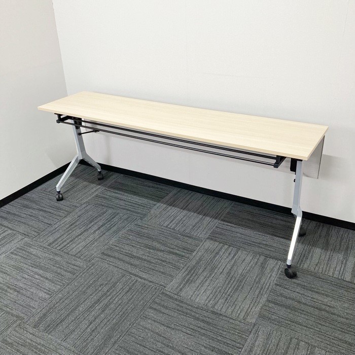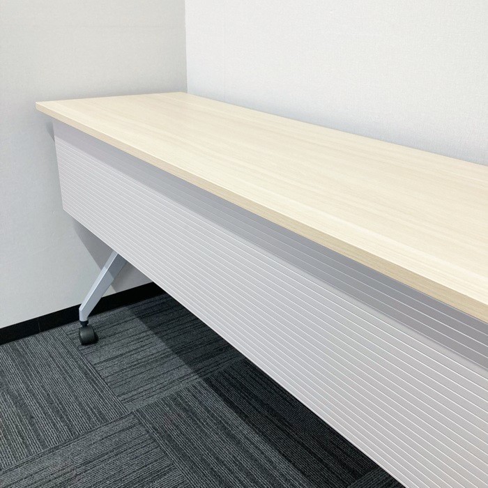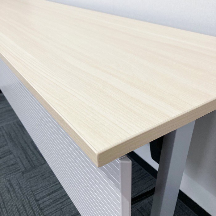 内田洋行 パラグラフシリーズ 平行スタックテーブル W1800×D450×H720 幕板付き 棚板付 天板:ライトファインウッド/脚:シルバー 2020年製 中古 ⑩