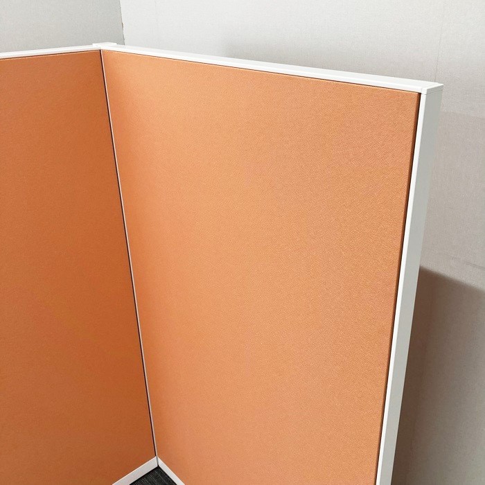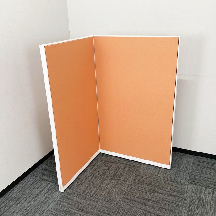 オカムラ ポジットシリーズ ローパーティション[L字型2連結] W700+800×D32×H1320  オレンジ 中古 ※SALE品